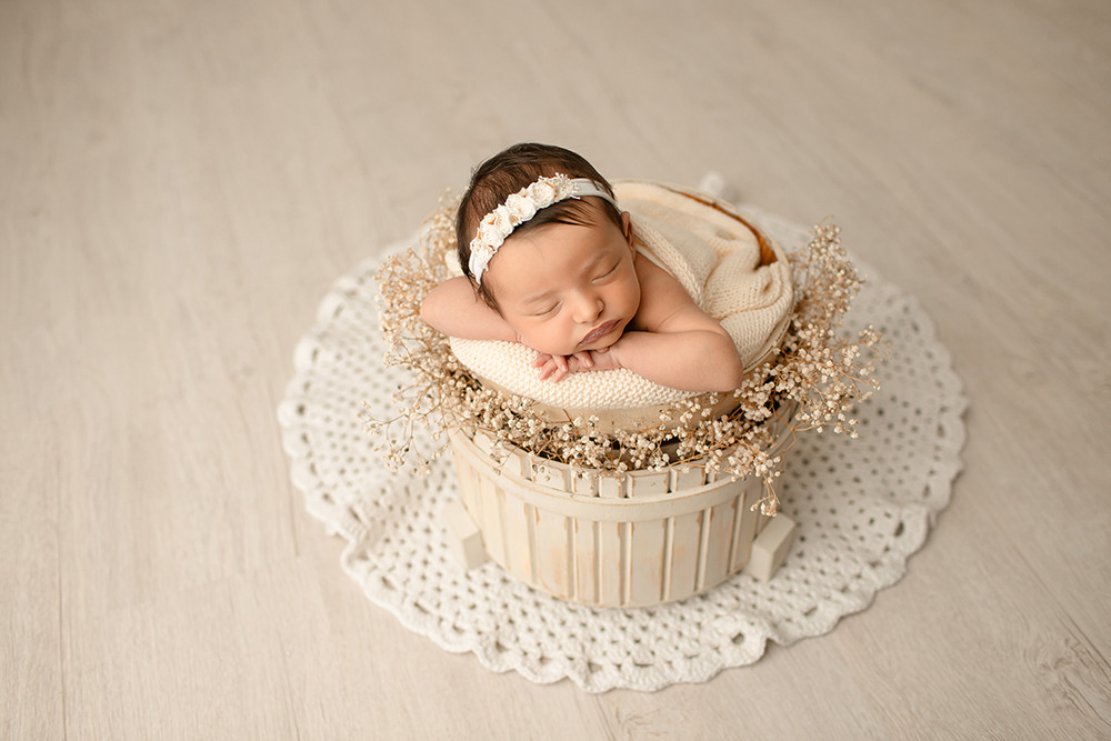 All my identity is clean, warm and very focus on baby. So I have all the props (headbands, bonnets, blankets, bucket), based on that. After we schedule, I will make some questions about your references to know your preferences for the session.